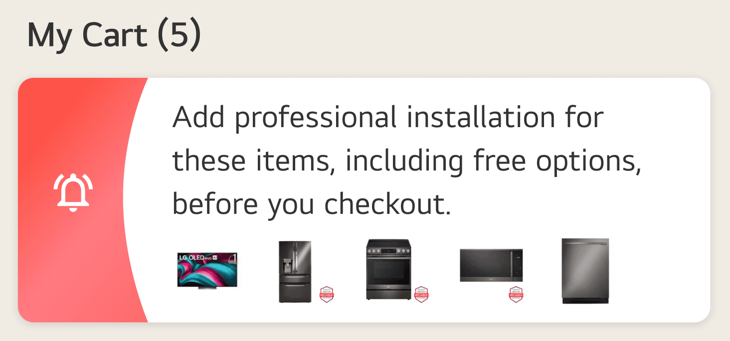 Cart reminder to add installation services before checking out