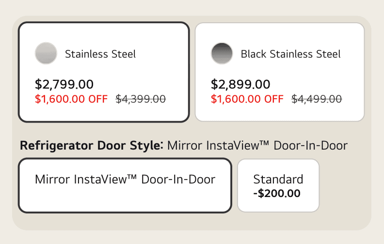 Product variants of a product to reduce browsing friction